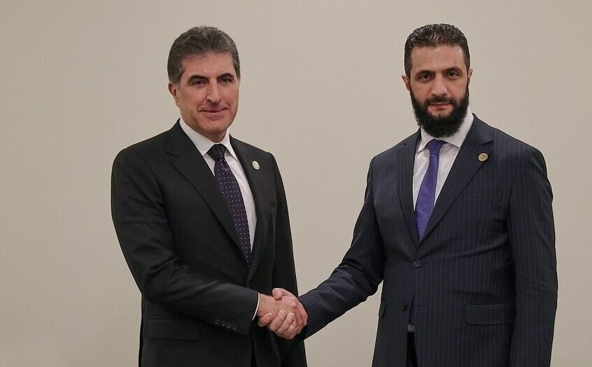 بيان: الشرع في اتصال هاتفي مع بارزاني أدان الهجمات على إقليم كردستان العراق