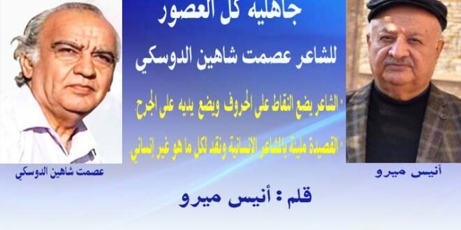 من بين الأمور التي تتجلى في هذا العصر تناقضات ومعاناة تطغ على حياة الناس وتؤثر فيها والتي تمر سريعا رغم هذا التطور الكبير يبقى الجهل بصوره العديدة ظاهرا للعيان مهما تجمل وتزين وارتدى ملابس جميلة . قصيدة الشاعر الكبير ( عصمت شاهين الدوسكي( ” جاهلية كل العصور ” هي أزمات على جسد الإنسانية وبيان للبصائر الرشيدة عودنا الشاعر الكبير بعد كل صمت يطرح قصائد مميزة في ظل العرف الاجتماعي الذي نعيشه لكون ما يطرح لا يقرأ ولا يتحرى عن السبب من طرحه لكون ( الظرف المؤلم الذي أصبح عليه واقع دول المنطقة والعالم ) ظرف صعب بل إجرامي وغير إنساني بحق البشرية في كل مكان حتى في دول أوربية وفي مختلف بقاع العالم….. فالجهل مصدر الحروب و افتعال الاقتتال الداخلي في دول العالم لأنها تخص المصالح المكورة الضيقة بعيدا عن مصالح البشرية وفي محاور كثيرة أصبح الموضوع كأنه شيء اعتيادي يومي …!! يعني الحرب القتل الاغتصاب المخدرات العري الاغتيال الهجرة اللجوء الغربة وغيرها كأنها أشياء عادية تحدث كل يوم دون الوقوف عندها ودراستها وتحليلها وتأويلها وإيجاد حد وحلول لها .