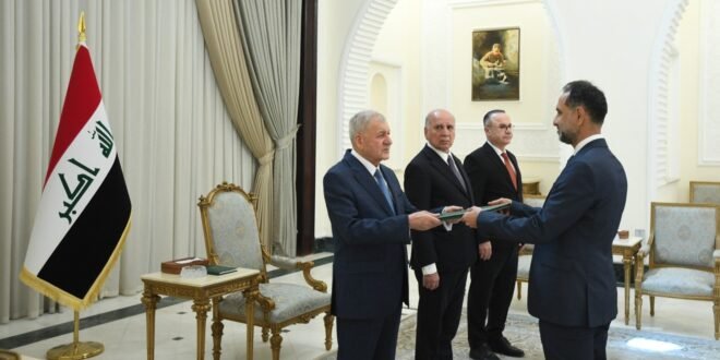 وقالت رئاسة الجمهورية في بيان : إن “رئيس الجمهورية عبد اللطيف جمال رشيد، تسلم اليوم الخميس في قصر السلام ببغداد، أوراق اعتماد السفير البريطاني الجديد لدى العراق عرفان صدقي”.