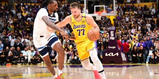 وفي المباراة الثالثة التي أقيمت الثلاثاء، سجل العملاق السلوفيني لوكا دونتشيتش 31 نقطة مع 12 متابعة وتسع تمريرات حاسمة وأضاف “الملك” ليبرون جيمس 21 نقطة وقادا فريقهما لوس أنجليس ليكرز إلى الفوز على ضيفه مينيسوتا تمبروولفز 94-85، وتعويض خسارة المباراة الاولى 95-117.
