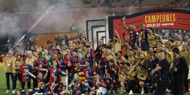 منبر العراق الحر : توج فريق برشلونة بلقب بطل كأس إسبانيا لكرة القدم، على حساب غريمه التقليدي ريال مدريد بفوزه عليه في النهائي الذي جمعهما مساء يوم السبت، على ملعب “لا كارتوخا” بمدينة إشبيلية.
