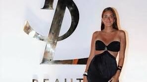 وصففت ميا شعرها الأشقر الداكن على جانب رأسها بتموجات، بينما ارتكز مكياجها على ظلال عيون ذهبية لامعة، وأحمر خدود وردي، وأحمر شفاه بنفسجي.
