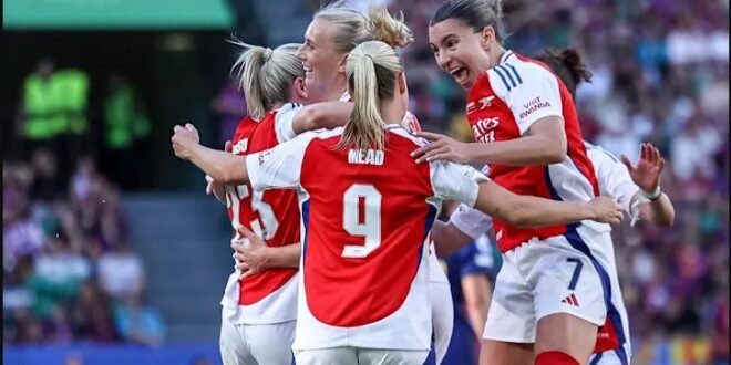 منبر العراق الحر :سجلت ستينا بلاكستينيوس مهاجمة أرسنال الإنكليزي هدف الفوز في اللحظات الأخيرة، لتقود الفريق اللندني لفوز المفاجئ على برشلونة حامل اللقب 1-صفر مساءالسبت، ليحرز الفريق لقبه الثاني في دوري أبطال أوروبا للسيدات.