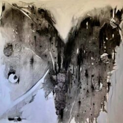 يؤطر الفنان أسئلته الوجودية ضمن مشهد بصري يستلهم مفهوم “الانكشاف” (Aletheia) عند هايدغر، حيث تتحول بقايا الطبيعة – كالأوراق المحترقة والأخشاب المتفحمة – إلى أثر كوني يحمل سؤالًا مصيريًا:
