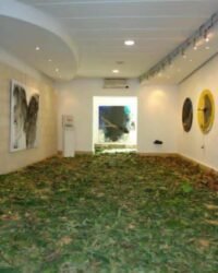 تجميعات فنية من أوراق الأشجار والجذوع، حيث فُرشت أرضية المعرض بهذه العناصر الطبيعية لإتاحة تجربة فكرية حسية مباشرة مع الطبيعة.