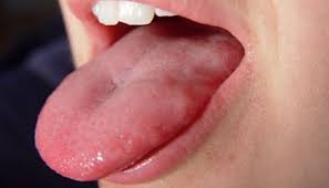 اللسان “الجغرافي”: يظهر بنمط يشبه الخريطة مع بقع حمراء وناعمة، نتيجة عدم تجدد الطبقة العليا، وعادة ما يكون غير ضار رغم الشعور بالألم أحيانا.