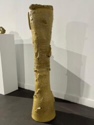 في فضاء، نشوة شكلت طينا،تُراقصهُ ملامح وحسرة ذاكرة غارقة في لججِ الخلق. متوغلًا في أعماق امتداد لمسيرتي الفنية تضاف لدرب المعرفة ، وهذه الاضافة هي انغماس في بيئة مغايرة كي يخرج منه شكلاً وجداراً يُغطي تاريخَ تراب الارض، ويفتح لي بابًا اوسعًا للبحث والتجريب. ما أصنعه اليوم ليس تكراراً لما مضى، بل هو تجربة ضائع الجواب فشكلَ خرابًا، أتبنّى فيها مفهومي “الغرائبي” و”المفاهيمي” اللذين يتبلورا بوضوح في نتاج أعمالي المتنوعة.