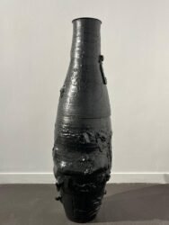 تسلّلت رؤية دفينة ببطء من ماض مُخبأ، بين مادة البورسلين وجلد الأرض، التقط أجوبة ظلها زهرة أحتضنت نجوم الليل. قليلًا ما أستحضر رمزية الألوان، ولا سيما في تواصلي مع الثقافات الاخرى، حيث يتجاوز اللون المطبوخ بعلامةٍ محسوسة على جسد الشكل . يتلألأُ منه اللون وعلى سطحه وحشةً مكحلة بخطوط نقشت جفن الأرض لتعطي معانٍ . ارممُ ما تبقى من جرح خرابه قابِع تحت الرمال، واتذوّقُ نهاراتٍ بلون التراب المالح.