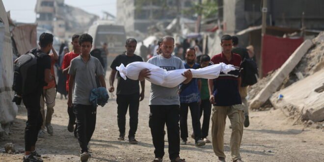 وفي مدينة غزة، استشهد 3 مواطنين وأصيب آخرون بعد قصف الاحتلال خيمة نازحين في شارع اللبابيدي في المدينة”.