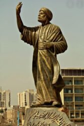 1/ صورة لنصب المتنبي ببغداد، اتمام الفنان البارع محمد غني حكمت..