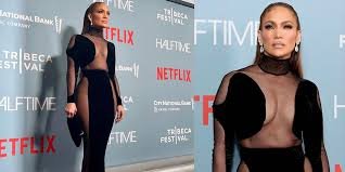 ارتدت جينيفر لوبيز فستانأ أبيض مطبعاً بأزهار برتقالية وخزاميّة اللون من تصميم فاوستو بوغليسي المدير الإبداعي لدار “روبرتو كافالي” Roberto Cavalli، تميّز بقصّة طويلة منسدلة مكشوفة الكتفين والظهر بنمط”هالتر نك” Halter Neck، وتفصيل ياقة عميقة عند الصدر مع حزام ناعم من نسيج الفستان يحدّد الخصر. جمع تصميم الثوب الصيفيّ المنعش بين الرقي الإيطالي والطابع البوهيمي العصري، ما جعل الإطلالة تعبق بالأناقة الكلاسيكية واللمسة الشبابية.)