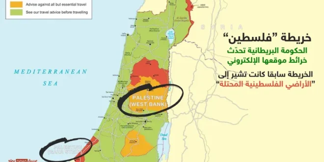 حدّثت الحكومة البريطانية خرائط موقعها الإلكتروني، التي كانت تُشير سابقًا إلى “الأراضي الفلسطينية المحتلة”، لتدرج “فلسطين” بدلًا منها.