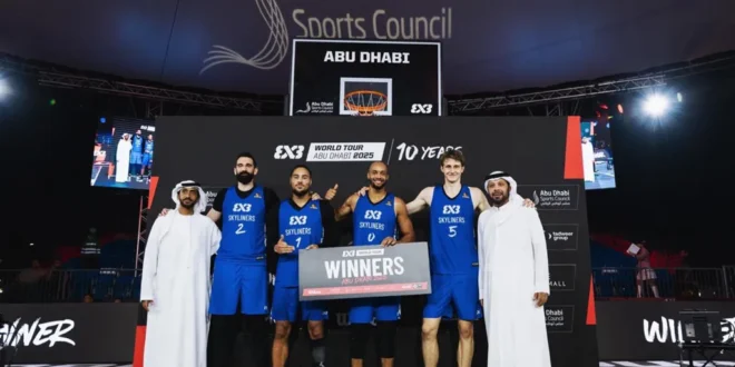 تُوّج فريق سكايلاينرز الألماني بلقب الجولة العالمية لكرة السلة الثلاثية (أبو ظبي 2025)، بعد فوزه على فريق ميامي الأميركي بنتيجة 19 – 17.