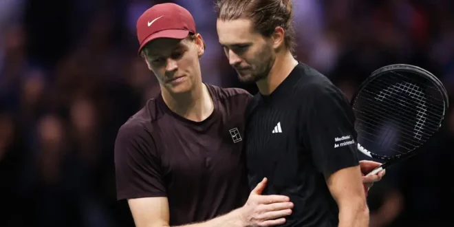 تأهل الإيطالي يانيك سينر إلى أول نهائي له في بطولة باريس للأساتذة مساء السبت بعد أن اكتسح منافسه الألماني ألكسندر زفيريف الذي كان يعاني بدنياً، بنتيجة (6-0) و(6-1).