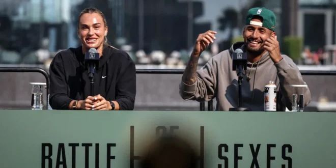 تستعد المصنفة أولى عالمياً في كرة المضرب أرينا سابالينكا والأسترالي المثير للجدل نيك كيريوس لمواجهة استعراضية الأحد في دبي، أطلق عليها منظموها اسم “معركة الجنسين”، لكنها تختلف تماماً عن المواجهة التاريخية التي جمعت بيلي جين كينغ وبوبي ريغز عام 1973.