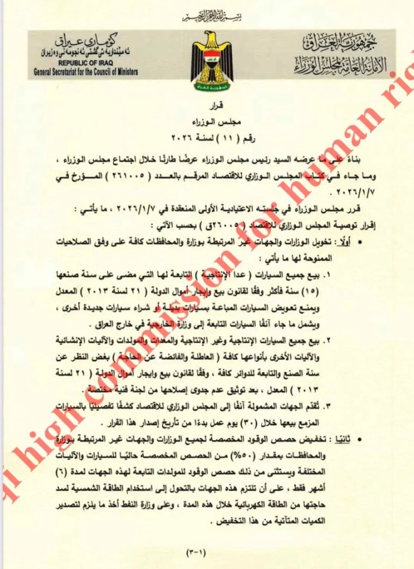منبر العراق الحر :أصدر رئيس مجلس الوزراء، محمد شياع السوداني، اليوم الاثنين (12 كانون الثاني 2026)، قرارات جديدة تهدف إلى تعزيز الإيرادات ودعم الاقتصاد الوطني.