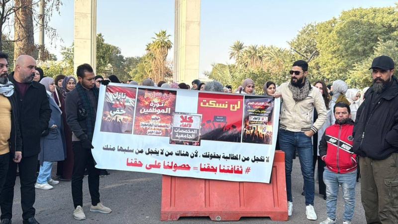تظاهر المئات من موظفي الجامعات في بغداد والمحافظات، اليوم الاحد ( 25 كانون الثاني 2026 )، احتجاجاً على قرار إلغاء المخصصات الجامعية، فيما اعلنوا الاضراب عن الدوام الرسمي لحين الغاء القرار.