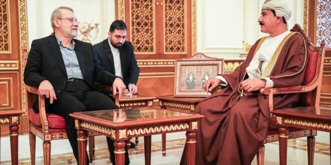 والتقى لاريجاني في مسقط بوزير الديوان السلطاني العُماني الفريق أول سلطان بن محمد النعماني، في إطار جولة دبلوماسية إقليمية تهدف إلى تعزيز التعاون وحسن الجوار، خاصة مع تصاعد التهديدات الأمريكية والإسرائيلية المحتملة ضد إيران.