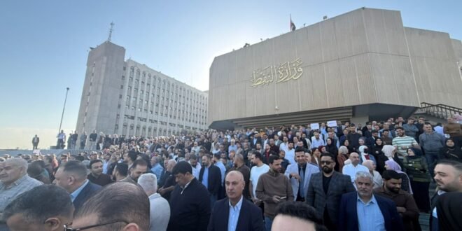 وقال المصدر : أن المتظاهرين تجمعوا أمام مباني الشركات النفطية وفي محيط مقر وزارة النفط، رافعين لافتات تطالب الحكومة بالتراجع عن أي إجراءات قد تمس حقوقهم المالية، مؤكدين أن الحوافز تُعد جزءاً من استحقاقاتهم المرتبطة بطبيعة العمل في هذا القطاع المهم.