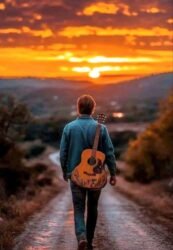 ثم، في لحظة استثنائية اهتم بالموسيقى ؛ و اشترى جيتاراً… ؛ لم تكن آلةً فحسب، بل كانت سفينةً خشبيةً سريعة، وطريقاً معبّداً بالنجوم… ؛ أصبح يعزف عليه، فأصابعه تنسج خيوط الضوء على أوتار من ظل… ؛ كان يعزف في غرفته الصغيرة، ويتخيّل نفسه في شوارع أوسلو، أو مقاهي مدريد،أو جسور باريس… ؛ نعم كان يتخيّل نفسه في دول الشمال الباردة، التي لم يرها حتى في أحلامه… ؛ يعيش في يقظته أحلاماً ساطعة: تارةً يجلس في مقهى على ضفاف السين، وتارةً يتأمّل الضباب في هايد بارك، وأخرى يسمع حفيف أجنحة الحمام في ساحة مايور بمدريد… ؛ ويرمّم روحه بأوتارٍ نحيلة، كأن الموسيقى قارب نجاة في بحرٍ من الإسمنت القاسي والجاف .
