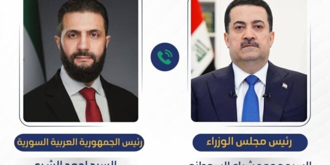 تلقى رئيس مجلس الوزراء السيد محمد شياع السوداني، اليوم السبت، اتصالا هاتفيا من الرئيس السوري السيد أحمد الشرع.