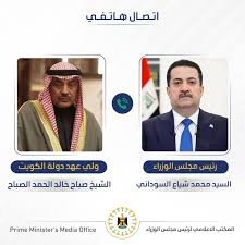 وذكر المكتب الإعلامي لرئيس مجلس الوزراء في بيان : أن “رئيس مجلس الوزراء محمد شياع السوداني بحث هاتفياً، مع ولي عهد دولة الكويت الشيخ صباح خالد الحمد الصباح، آخر المستجدات الأمنية في المنطقة، والتداعيات الخطيرة المترتبة على استمرار العمليات العسكرية”.