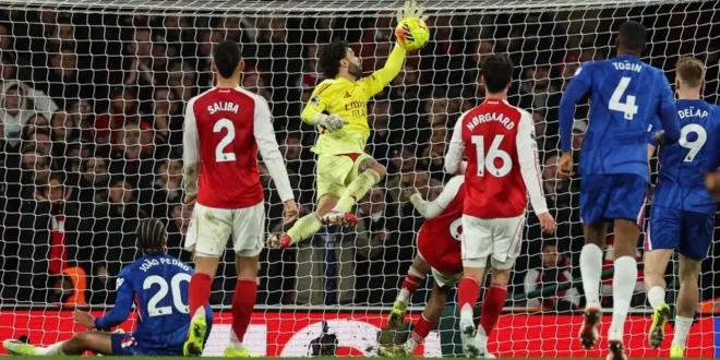 عبَر أرسنال امتحان تشيلسي وفاز بالديربي اللندني الثاني توالياً، أمام ضيفه تشيلسي المنقوص عددياً 2-1 الأحد في ختام المرحلة 28 من الدوري الإنكليزي لكرة القدم التي شهدت قلب مانشستر يونايتد الطاولة على كريستال بالاس وسقوطاً جديداً لتوتنهام.