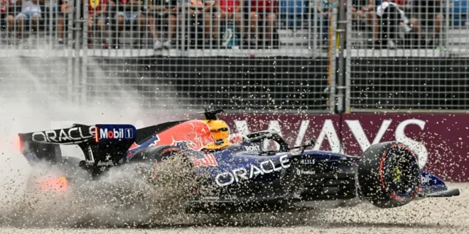 وخرج فيرستابن من سيارته ريد بُل وهو يهز يده ومعصمه، لكنه أكد بعد فحص طبي أنه بخير.