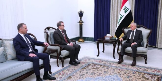منبر العراق الحر :أكد رئيس الجمهورية، عبد اللطيف جمال رشيد، اليوم الاثنين ( 9 آذار 2026 )، خلال لقائه السفير التركي لدى العراق، انيل بورا إينان، في قصر السلام ببغداد، على أهمية تكثيف الجهود الدبلوماسية وتعزيز التنسيق لمعالجة الأزمات الإقليمية والتحديات السياسية والأمنية في المنطقة.