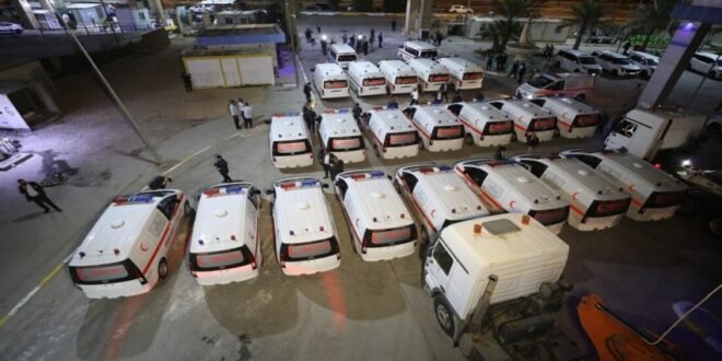 وبيّنت أن “القافلة الأولى توزعت على (8) شاحنات محملة بمستلزمات طبية وأجهزة تخصصية للحالات الطارئة، و(6) شاحنات مخصصة للمساعدات الخدمية والإنسانية، فضلاً عن (8) شاحنات نقلت آليات ثقيلة لدعم جهود الإغاثة في المناطق المتضررة”.