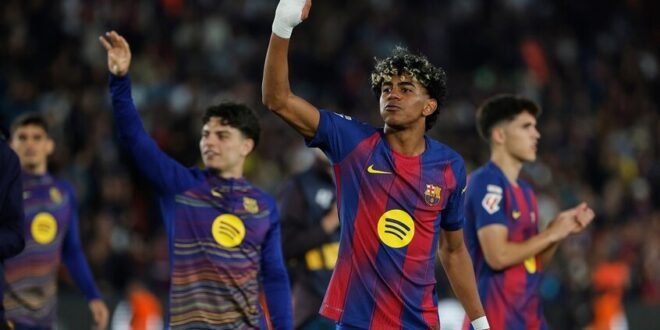 ورفع فريق برشلونة رصيده بعد هذا الفوز إلى 79 نقطة مبتعدا في صدارة الدوري “الليغا” بفارق أتسع نقاط عن وصيفه ريال مدريد الذي سقط في فخ التعادل أمام ضيفه جيرونا يوم أمس السبت.