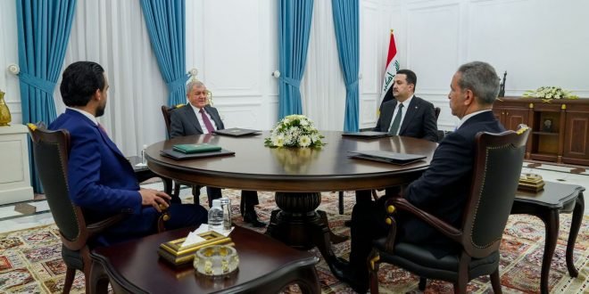 استضاف رئيس مجلس الوزراء محمد شياع السوداني، مساء اليوم السبت في القصر الحكومي، اجتماعاً ضم رئيس الجمهورية عبد اللطيف جمال رشيد، ورئيس مجلس النواب محمد ريكان الحلبوسي ورئيس مجلس القضاء الأعلى القاضي فائق زيدان، بحسب بيان لمكتب السوداني .