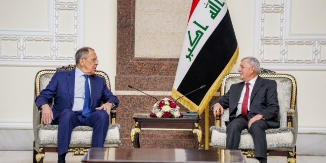 وقالت وزارة الخارجية العراقية في بيان، إن “وزير الخارجية الروسي سيرغي لافروف وصل إلى بغداد في زيارة رسميّة، يلتقي خلالها الرئاسات الثلاث، وبحث مع نظيره نائب رئيس مجلس الوزراء وزير الخارجية فؤاد حسين سبل الدفع بالعلاقات الثنائية في مؤتمر صحفي مشترك.