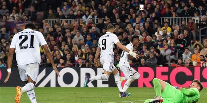 قاد الفرنسي كريم بنزيما فريقه ريال مدريد، لانتصار عريض بنتيجة (4-0) خلال مواجهة الغريم التقليدي برشلونة، مساء يوم الأربعاء، في إياب نصف نهائي كأس ملك إسبانيا، في معقل البلوجرانا “سبوتيفاي كامب نو”.