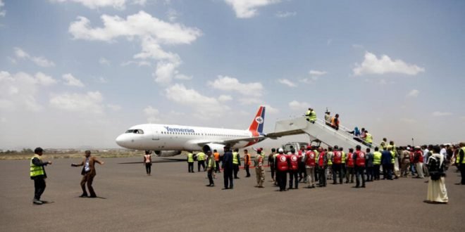 وأفاد مصدر بمطار صنعاء الدولي، بوصول طائرة تابعة للصليب الأحمر على متنها 48 أسيرا من جماعة الحوثيين، قادمة من مطار تداوين في محافظة مأرب شرق العاصمة صنعاء”.