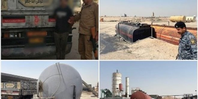 وأضافت انه “تم ضبط عجلة نوع “كنتر” تحمل (20) برميلا سعة 220 لترا، وعثرت ايضا على (12) خزانا حديديا كبير الحجم، جميعها معبأة بمنتوج نفطي مجهول الكمية والنوعية”.