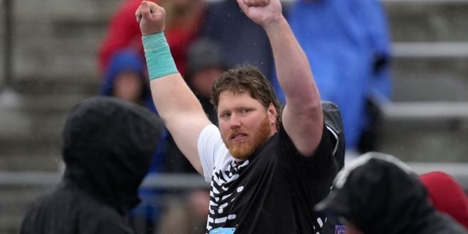 ومحا كراوزر، بطل أولمبيادي 2016 و2021 وبطل العالم في يوجين العام الماضي، رقمه السابق البالغ 23.37 متراً الذي سجله في يوجين في عام 2021.