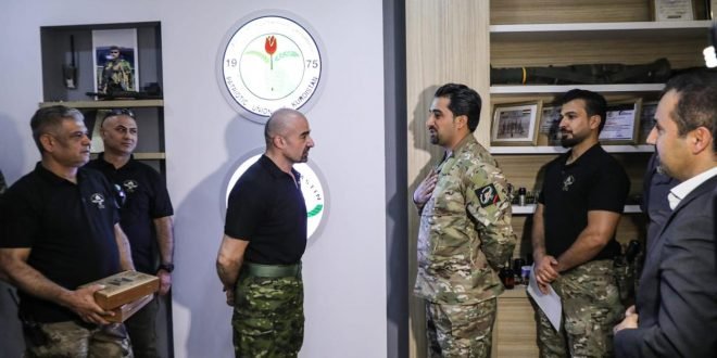 وفي نهاية اللقاء قدم رئيس الاتحاد الوطني الكردستاني “هدية لمديرية مكافحة الارهاب تقديراً لجهودهم وتضحياتهم من أجل إقليم كردستان”.