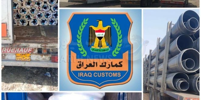 وذكرت الهيئة في بيان: أن “قسم التحري و مكافحة التهريب في مديرية كمرك المنطقة الشمالية تمكن من ضبط ( 54 ) شاحنة محملة (ادوية بشرية و مستلزمات طبية و منظومات رش زراعية و انابيب حديد و انابيب بلاستك و انابيب المنيوم و هياكل حديد و صحيات و كاشي مطاط و اضافات علفية و ملابس و احذية و مصاعد و مواد غذائية و مواد اولية و الات و اجهزة قص و اثاث و خزانات خزن النفط و معمل كرين و دراجات نارية و أدوات منزلية ) مخالفة للشروط و الضوابط الاستيرادية النافذة”.