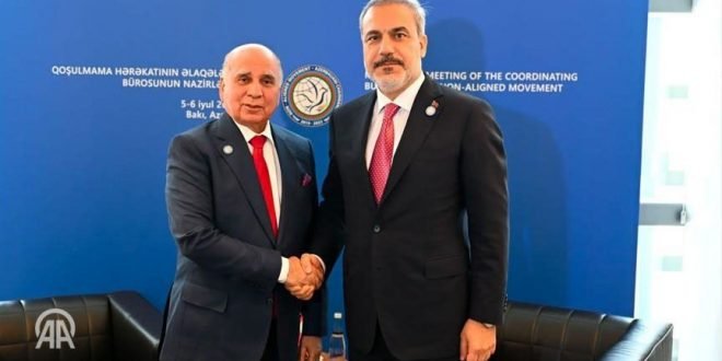 وقالت الخارجية العراقية في بيان : إن نائب رئيس مجلس الوزراء وزير الخارجية فؤاد حسين التقى وزير الخارجية التركي هاكان فيدان، على هامش مُشاركته في الاجتماع الوزاري لدول حركة عدم الانحياز، الذي يُعقد في باكو للفترة من 5-6 تموز 2023.