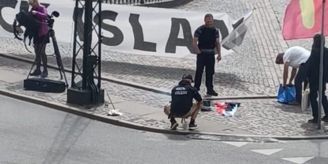 حرق نسخة من القران الكريم والعلم العراقي في الدنمارك