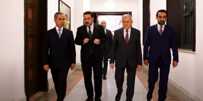 وذكرت المكتب الإعلامي لرئيس البرلمان في بيان : أن “الرئاسات الأربع متمثلة رئيس الجمهورية عبد اللطيف رشيد ورئيس الوزراء محمد شياع السوداني ورئيس البرلمان محمد الحلبوسي ورئيس مجلس القضاء الأعلى فائق زيدان عقدوا أجتماعاً لبحث عدد من الملفات المهمة”.