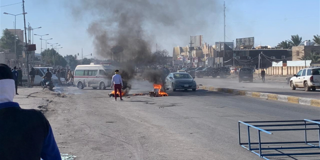 وقال المصدر : أن “محتجين ملثمين أقدموا على قطع تقاطع البهو والطريق السريع وباب قسم الأملاك التابع لمديرية بلدية الناصرية وسط المحافظة”.