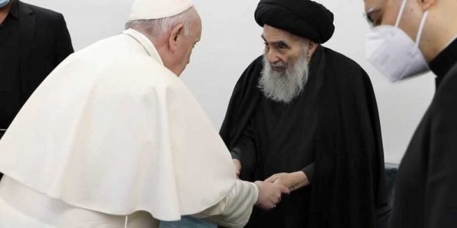 وبعد: فقد سرّني كتابكم الكريم الذي بعثتم به إليّ بمناسبة الذكرى الثانية لزيارتـكم التاريخية للعـراق، واللقـاء الـذي جمعني بكـم في النجـف الأشرف، ذلك اللقاء المهمّ الذي أصبح حافزاً للكثيرين من أتباع الديانتين الإسلامية والمسيحية ـ بل ولغيرهم أيضاً ـ للتحلّي بقدرٍ أكبر من التسامح وحسن التعايش مع من يخالفهم في الدين والعقيدة.