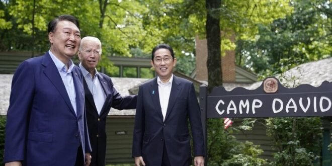 وقال بايدن خلال الافتتاح مع رئيس كوريا الجنوبية يون سوك يول ورئيس الوزراء الياباني فوميو كيشيدا، في المنتجع الرئاسي بولاية ماريلاند: “بلداننا أقوى وسيكون العالم أكثر أمنا ونحن نقف معا”.