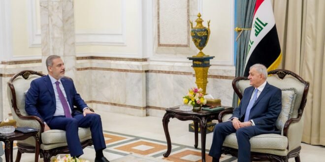 وقالت رئاسة الجمهورية في بيان : إن “رئيس الجمهورية عبد اللطيف جمال رشيد استقبل، اليوم في قصر بغداد، وزير الخارجية التركي هاكان فيدان والوفد المرافق بحضور وزير الخارجية فؤاد حسين”.