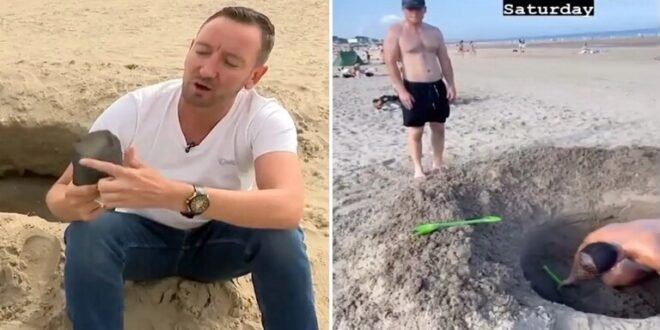 حيث نشر حساب على موقع “X” لقطات لرجلين يحفران الحفرة بأنفسهما، وأرفقه بتعليق: “نشرت Virgin Media News تقريرا عن حفرة على شاطئ بورتمارنوك والتي قد تكون نتيجة لحدث كوني. لكن في الواقع قام بعض الرفاق بحفرها حرفيا في اليوم السابق بمجرفة طفل”. وأضاف: “الطريقة التي كان يتحدث بها الرجل عن كون الصخرة نيزك جعلتني أبكي”.