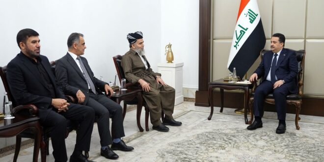 وقال المكتب الإعلامي للسوداني في بيان: إن “رئيس مجلس الوزراء محمد شياع السوداني استقبل، اليوم الإثنين، رئيس حركة جماعة العدل الكوردستانية علي بابير، وشهد اللقاء البحث في مجمل الأوضاع العامة والاقتصادية والخدمية على المستوى الوطني”.