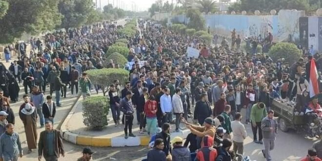 وتابعت : ان ” البصرة شهدت ايضا، تجمع حشود عقود النفط 315 امام موقع وضع حجر الاساس لمشروع طريق الفاو السايد الثاني، الذي من المقرر أن يزوره رئيس الوزراء محمد شياع السوداني اليوم، بغية لقائه ومطالبته بتثبيتهم على الملاك الدائم بعد انقضاء المدة القانونية ( سنتان )، وسط محاولة قوة من مكافحة الشغب لتفريقهم”.