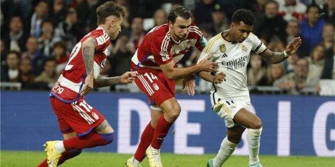 فاز ريال مدريد على ضيفه غرناطة بنتيجة 2-0 مساء اليوم السبت، ضمن منافسات الجولة 15 من عمر الدوري الإسباني.